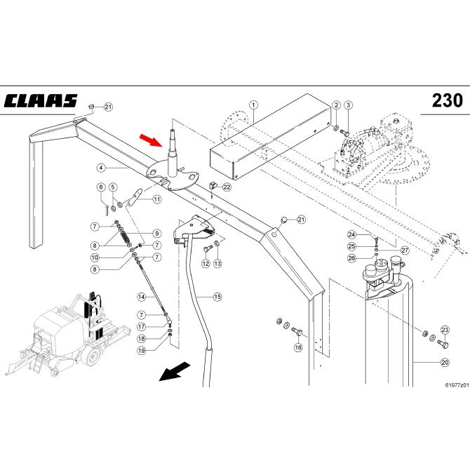 Hriadeľ obaľovacieho ramena fóliovačky ROLLANT Uniwrap