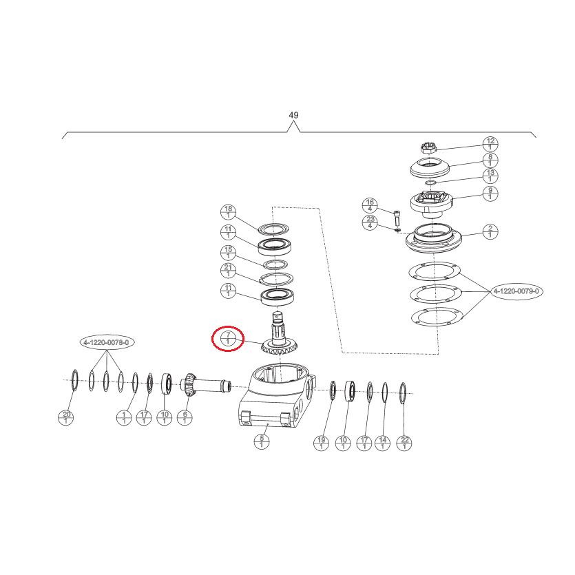 ozubené koleso s hriadeľou disku Z23 kosačky LELY (14 × 23)